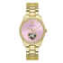 Die GUESS Be Loved GW0380L2 ist eine feminine Damenuhr mit romantischem Design. Das 38 mm große Edelstahlgehäuse mit goldfarbener IP-Beschichtung umrahmt ein rosafarbenes Zifferblatt, auf dem ein dekoratives Herz einen Blick auf das Uhrenwerk freigibt. Funkelnde Details und das goldfarbene Edelstahlarmband mit Faltschließe verleihen der Uhr einen eleganten, schmuckartigen Charakter.